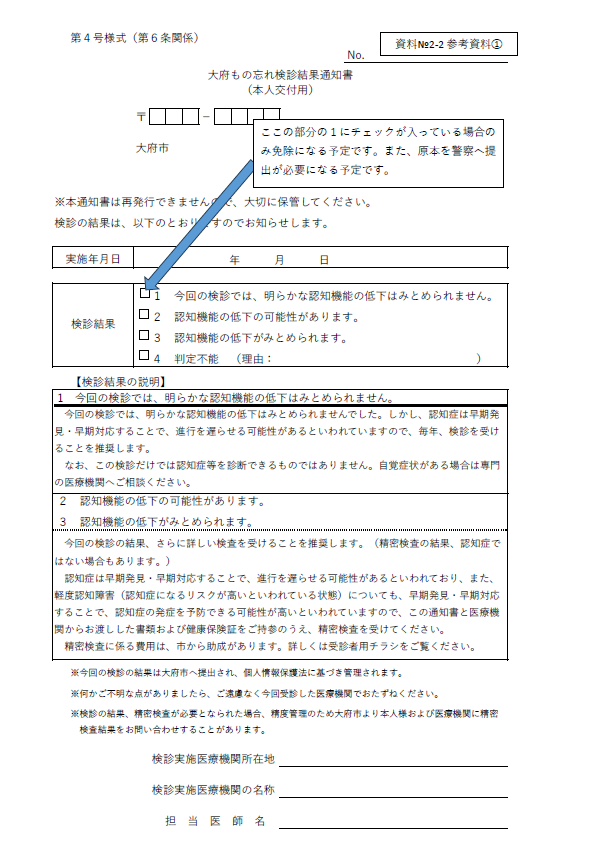 この制度では、検診の結果通知書を愛知県警察に提出することで、一定の条件を満たす
